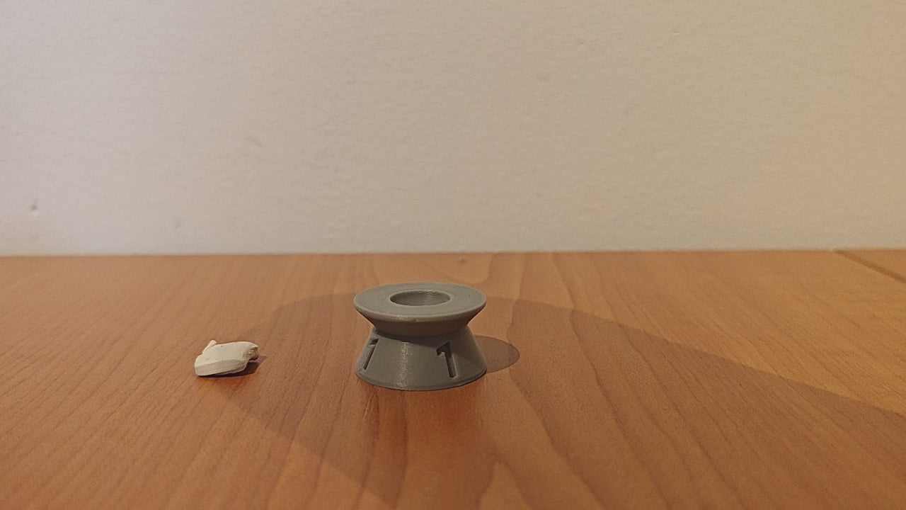 With every Initiative Enhancer - Putty version you get a piece of putty / kneaded eraser to attach the minis. Place a little putty in the dent of the Initiative Enhancer and place the mini on top of it, the dent allows the mini to be placed flat on the Initiative Enhancer.